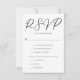Simple, chic et élégant, notre collection minimaliste de mariage d'hiver comprend une typographie cursive élégante pour votre événement moderne. Demandez à vos invités de sélectionner leur choix de repas sur cette carte RSVP boîtier qui présente un script noir simple dans une mise en page verticale.