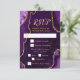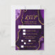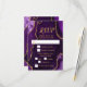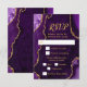 Faites une première impression audacieuse et élégante avec cette carte de réponse en marbre d'agate violet et or, mettant en vedette de riches tons de bijoux, des textures de pierre organique et des accents dorés scintillants parfaits pour les célébrations d'automne et d'hiver. Cette conception comprend des zones de texte personnalisables et des cases à cocher pour la sélection des repas, permettant à vos invités d'indiquer leurs préférences. Les options par défaut sont le bœuf, le poulet ou le végétarien, mais celles-ci peuvent être facilement modifiées pour s'adapter à votre événement. Les teintes d'améthyste profondes associées à des détails métalliques dorés créent un look dramatique mais raffiné idéal pour une réponse de mariage, une réponse d'anniversaire ou une réponse de Sweet Sixteen avec une esthétique formelle, moderne ou glamour. Inspiré par les motifs naturels d'agate et de géode, ce design luxueux se coord