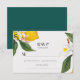 Un design élégant et raffiné de carte RSVP de mariage avec un mélange d'illustrations de citron peint à la main et de fleurs blanches et une texture arrière - plan blanche donne à ce design une atmosphère confortable.