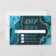 Make a bold and elegant first impression with this teal blue and silver agate marble RSVP card, featuring rich jewel tones, organic stone textures, and shimmering silver accents perfect for fall and winter celebrations. The deep ocean hues paired with metallic silver detailing create a dramatic yet refined look ideal for a wedding RSVP, birthday RSVP, or Sweet Sixteen RSVP with a formal, modern, or glamorous aesthetic. Inspired by natural agate and geode patterns, this luxurious design coordinates beautifully with upscale seasonal events and is fully customizable to match your details, adding timeless sophistication to autumn and winter celebrations alike.
