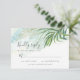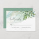 Une carte de réponse RSVP de mariage à la mode et élégante de style tropical avec palme d'aquarelle vert et or et feuilles monstères avec calligraphie moderne.