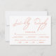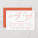 Faites en sorte qu'il soit facile et beau pour vos invités de répondre à votre invitation mariage de automne avec cette carte RSVP unique. Faites plaisir à vos invités et simplifiez les RSVP grâce à cette carte magnifiquement conçue. Doté d'un arrière - plan blanc immaculé, l'accent est mis sur un élégant script "RSVP", qui s'écoule dans l'orange tiède du coucher de soleil de Vérone. Cette disposition minimaliste garantit que la carte est frappante visuellement et complète sans effort tout thème mariage. Un côté inversé orange vif ajoute une pop de couleur cohésive.