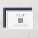 Elégante verdure ornée crête, QR Code mariage carte rsvp. Mariage monogramme moderne et intemporel crête en bleu marine et blanc avec modèle de typographie minimaliste tendance.