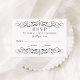 Des tourbillons décoratifs et des fleurs encadrent cette élégante carte de réponse mariage d'inspiration vintage. Arrière - plan blanc au design noir doux. Personnalisez avec votre date d'échéance de réponse personnalisée.