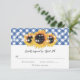 Cartes RSVP personnalisées en vichy bleu et mariage de tournesol. Un design de carte parfait pour compléter votre campagne, jardin, jardin ou fête de mariage de grange inspirée des tournesols. Objets correspondants disponibles pour compléter ces cartes RSVP de mariage floral rustique.