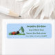 Ein lustiger grüner Frosch, der den Rasen im albernen Cartoon-Stil mäht.