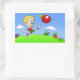 Cartoon-Abbildung eines Jungen, der eine Tomate sc Rechteckiger Aufkleber