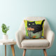 Fun accent throw pillow done in a cartoon style graphics, with a black cat sitting in a flower pot. Great way to add a touch of whimsy and color to your room.
