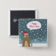 Cartoon braune Kitty trägt Weihnachtsmannmütze im Button