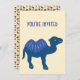 Egal, ob Sie eine Wüstenfeier veranstalten oder eine Geburtstagsfeier für einen Kamelfreund organisieren, diese Party Einladungen sind die perfekte Wahl. Die Vorderseite zeigt eine große Cartoon-Darstellung eines blauen Bactrian-Kamels oder eines zweigehobenen Kamels mit einem kleineren Kamelmuster in Blau, Orange und Gelb auf der Rückseite zusammen mit allen Details Ihres Party.