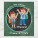 Ein niedliches Weinetikett mit zwei Cartoon-Kindern auf einer Tafel und mit Tafel. Nach einem anstrengenden Schuljahr und einem wunderschönen Geschenk für einen Lehrer können Sie sich gut entspannen.
