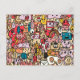 Cartoon Charakter Hand Drawn Toss Muster Postkarte. Farbenfrohe Muster mit verschiedenen lustigen und lustigen handgezeichnet Charakteren. Ideal für Kinder und Jugendliche.
