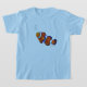 Niedlicher Clownfisch aus Cartoon schaut auf die Blasen, die er herstellt. Sehr süß auf diesem kindlichen T - Shirt. Anpassen mit jedem gewollt Text.