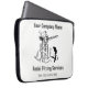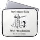 Luftbeschiffung auf einer personalisierten Computerhülle, die eine Cartoon-Illustration eines Luftmonteurs auf einer Leiter hat und mit einem unangenehmen Nistvogel konfrontiert ist. Fügen Sie Ihre Firmendaten hinzu.
