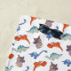 Die bekanntesten Dinosaurier: Tyrannosaurus, Brontosaurus, Triceratops und Stegosaurus im lustigen Muster.