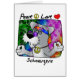 Einzigartiges Schnauzergeschenk! Geben Sie eine Erklärung über Sein ein Hundeliebhaber und über die Welt im Allgemeinen mit unseren niedlichen Friedens-, Liebe-, Schnauzer-T - Shirts und anderen Produkten ab. Alle Schnauzerinhaber verehren diesen Hippie-Cartoonhund und tragen ein Friedenssymbol, kleinen lila Sonnenbrillen und eine Regenbogen-Krawattenbandanna. Seine Augen sind geschlossen und er tut etwas entspannenc$singen. Der Hintergrund ist auch Regenbogen-gefärbte Krawatte.
