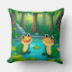 Cartoon Frösche am Teich im lebendigen Wald Kissen