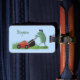 Ein lustiger grüner Frosch, der den Rasen im albernen Cartoon-Stil mäht.