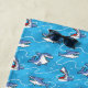 Cartoon Große Weiße Haie schwimmen auf einem Muster von blauen Ozeanwellen. Hai-Fans werden dieses lustige Design auf diesem individuell gestaltbaren Strandtuch sicher genießen!