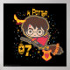 Check out this cute cartoon version of Harry Potter in his Quidditch Seeker uniform flying beside the golden snitch.
