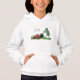 Ein lustiger grüner Frosch, der den Rasen im albernen Cartoon-Stil mäht.