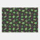 Cartoon Kaktus mit Blume auf schwarzem Hintergrund Geschenkpapier Set