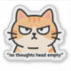 Lustige und absurde Internet-Meme-Illustration mit einer Cartoon-Katze mit leerem Blick, beschriftet "keine Gedanken, Kopf leer".
