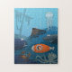 Dieses niedliche Puzzle aus Jigsaw, das in blauen Tönen gestaltet wurde, zeigt tapfere Kinder, die das Unterwasser-Leben aus dem Fenster seines U-Bootes erforschen. Er reist durch die Korallen und Schiffswracks und beobachtet verschiedene Meereslebewesen wie Oktopus, Hai, Krabben, Quallen. Ideal für Kinder, die von Abenteuern unter Wasser träumen.