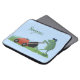 Ein lustiger grüner Frosch, der den Rasen im albernen Cartoon-Stil mäht.