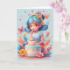 Niedliche Mädchenfigur, mit Geburtstagskuchen. Bleiben Sie im Inneren für Ihre persönliche Nachricht, und Sie können Ihren eigenen Gruß auf der Vorderseite hinzufügen.