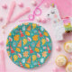 Cartoon Muscheln mit Sand und Doodle-Verzierung Pappteller