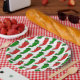Cartoon-Muster für rote und grüne Pfefferdivas Pappteller