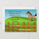 Kindergeburtstag-Einladungen mit bunten Grafiken von einem Cartoon Pferd galoppieren über einen grünen eingezäunten Feld. Passen Sie den Text so an, dass er den Bedürfnissen des Party Ihres Kindes entspricht. Ändern Sie auch Textfarbe, -größe und -stil, wenn Sie gewollt haben.