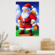 Ein Cartoon des Weihnachtsmannes, der vor einem Haus stehend ist und Sie ansieht und weiß, ob Sie gut oder schlecht waren, ist das Jahr. Er trägt einen roten Anzug, Hut und Stiefel und hat einen langen weißen Bart. Andere Bezeichnung für den Weihnachtsmann, St. Nikolaus, Kris Kringle, Weihnachten des Vaters, Nikolaus. Das ist eine künstlerische KI.