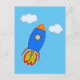 Cartoon Space Rocket in Blue Sky Postkarte