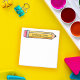 Quadratische klebrige Noten mit Ihrem Namen in einem handgeschriebenen Schriftart auf einer Cartoon-Abbildung eines Bleistifts mit einem rosa Radiergummi. Zurück zu Schulklebrigstiefen für Schüler und Lehrer gleichermaßen mit einem kurzen und chubby Cartoon Bleistift.
