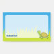 Cartoon-Illustration einer glücklichen Schildkröte auf Gras und Himmel Hintergrund. Eigener Text.