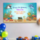 Mit unserem Banner unter dem Meeresthema Kindergeburtstag verwandeln Sie die Geburtstagsfeier Ihres Kindes in ein Unterwasserabenteuer. Mit lebendigen Farben und spielerischen Meereslebewesen erfreut dieses Banner Kleine und Gäste gleichermaßen. Es ist die perfekte Ergänzung zu dem Unterwasser-Erlebnis, das Ihr Kind zum Geburtstag zum Thema "Kinder" feiert. Personalisieren Sie es mit dem Namen und Text Ihres Kindes für eine besondere Touch, die den Anlass unvergesslich macht. Ob über dem Party-Tisch oder als Hintergrund, dieses Banner fügt jedem Unterwasserfest eine charmante Touch hinzu. Tauchen Sie ein in eine Welt der Fantasie und erschaffen Sie unvergessliche Momente mit unserem Cartoon unter den Meerestieren Thema Kindergeburtstag Banner.