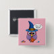 Ein niedlicher Cartoon-Zauberer, der zu Halloween Trick oder Treue macht. Die violette Eule trägt einen Zauberhut und eine große runde Brille und hat einen orangefarbenen Jack-o-Laternen Eimer voller Bonbons. Ideal zu Halloween.