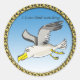 Cartoonseemöwefliegen obenliegend mit einem runder aufkleber