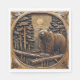 Rustikal geschnitzte Holzschnitzel sehen aus Papierservietten mit einem Bären, der in einem Kiefernwald unter Vollmond stehend ist.