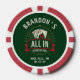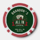 Hit the jackpot at bachelor poker tournaments with these green "All In Before the Ring" custom poker chips featuring a casino tablecloth design and vibrant playing card graphics. The lucky green colorway brings Vegas strip energy to golf clubhouses, Irish pubs, brewery crawls, or 24‑hour card sessions. Personalize the groom's name, city, state, and weekend date to create matching chip sets for the entire bachelor crew. Standard casino‑weight chips ready for high‑stakes betting and memorable wedding party showdowns.