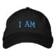 Un casquette de baseball noir moderne et personnalisé "I Am", brodé en turquoise. Une idée de cadeau motivationnel et un accessoire.