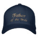 Père du casquette de la mariée. Un casquette de style casquette pour le fier papa. Vu ici en bleu foncé avec une broderie bronzée qui dit, "Père de la Mariée". Vous choisissez les couleurs.