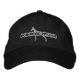 Ce fantastique casquette Doberman Pinscher est brodé avec la silhouette de la race, debout avec son nom imprimé devant. La silhouette du chien est gris argenté foncé, et le contour du texte est blanc. Ça a l'air fantastique sur nos casquettes noirs !