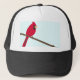 La séance cardinale rouge sur une illustration de branche d'arbre a placé contre un ciel bleu. Peut également être employé comme mascotte de sports pour le lycée, l'université ou la pro équipe. Vont les cardinaux !