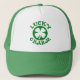 Emblème vert et blanc de cercle avec le charme chanceux en texte rond circulaire. Shamrock de trèfle de quatre feuilles pour la chance de l'Irlandais ! © www.CuteComfy.com de Copyright