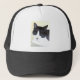 Un tableau aquarelle d'un chaton tuxedo noir et blanc orne ce casquette !