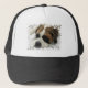 Chien de St Bernard se situant dans le casquette de baseball de neige.
