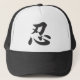 Basculez ce casquette de camionneur avec le symbole japonais de NIN. Le kanji de NIN symbolise la patience jusqu'à ce qu'il soit temps d'entreprendre une démarche.